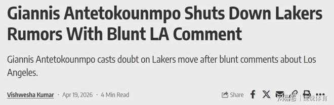 如今,随着字母哥本人公开表态,所有不切实际的幻想,可以直接画上句号了。来自美媒的最新消息,字母哥一系列言论,直接给湖人所有相关交易传闻按下了终止键。一直以来,外界都在疯狂猜测:这位雄鹿核心合同到期后,会不会南下湖人抱团争冠?各大媒体分析筹码、推演方案,球迷吵得热火朝天。