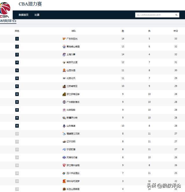 广州险胜福建之后,总战绩来到了18胜23负,由于潜力赛战绩等因素,广州目前排在第十二位。而相同战绩的北控则是排在第十三位。