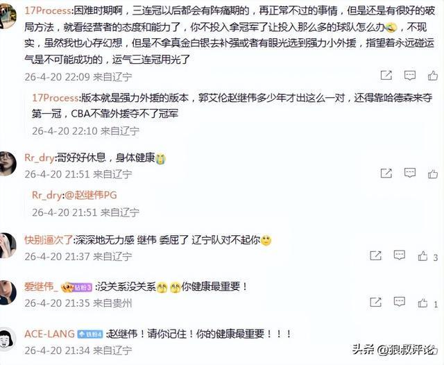 也有不少网友送出安慰,继伟辛苦了,保持健康最重要,keep calm,问心无愧就好啦。