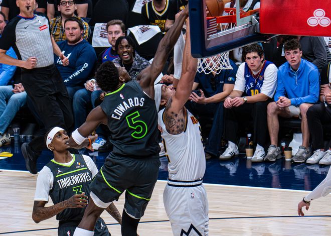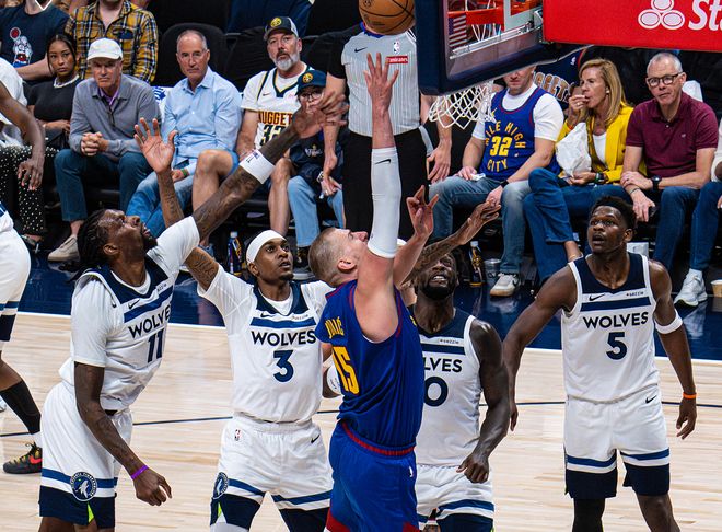 还要从掘金收官阶段说起,在常规赛最后两场比赛对手分别是雷霆+马刺的情况下,雷霆率先放水,让掘金自己做选择:收官战如果赢马刺,那掘金就去第三,那样就躲过雷霆这个半区;如果收官战不打算认真对待,那就去第四,打公认的软柿子火箭。没想到掘金早早放烟雾弹,表示要轮休四大主力,约基奇因为65场限制不得不打。马刺也轮休文班亚马,不打算和掘金较劲了,结果掘金赢了10分,力压湖人,守住西部第三,首轮打森林狼。森林狼连续两个赛季打进西决,他们可不是软柿子,即便他们没有真正的控卫。