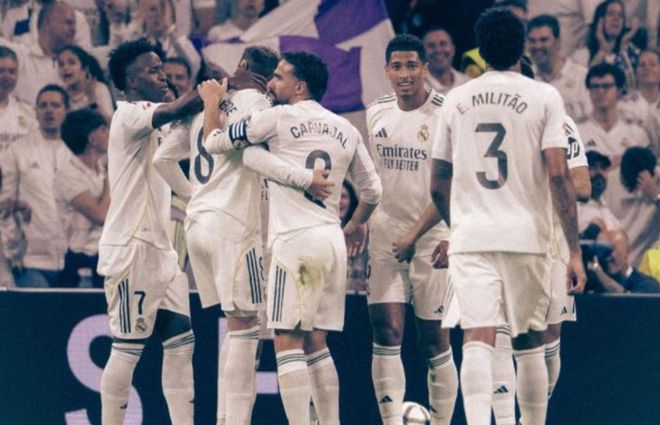 转折点出现在下半场。第51分钟,迪亚斯横传输送炮弹,巴尔韦德不负众望,禁区外轰出一脚势大力沉的世界波,皮球直挂死角,皇马1-0领先,全场瞬间沸腾。