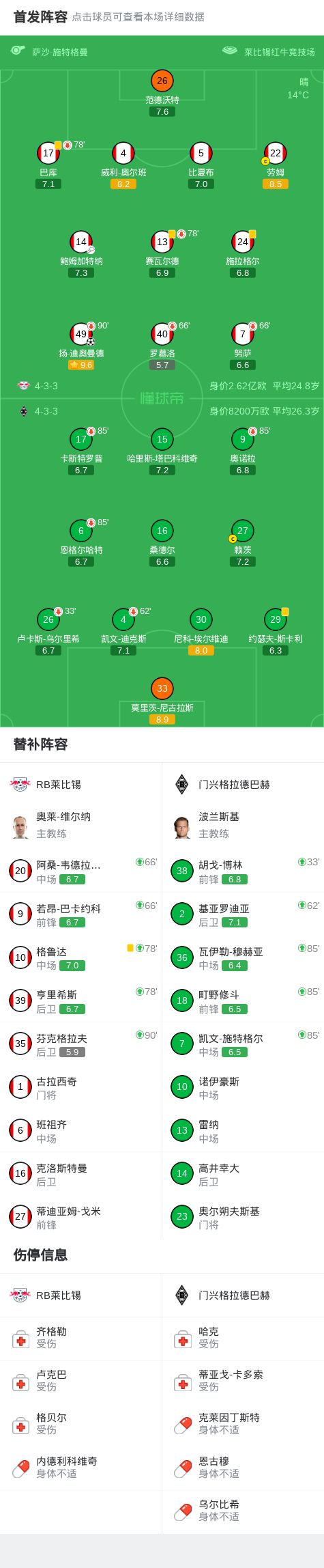 莱比锡1-0门兴,扬-迪奥曼德制胜,劳姆造险