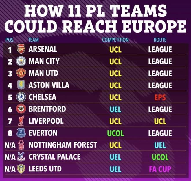 那张图里最让人不敢相信的,其实是为什么诺丁汉森林、水晶宫、甚至利兹联这些球队也能算进欧战名额的竞争里。原因很简单,规则给他们留了后门。按照英超官方的说法,拿到欧冠或者欧联杯冠军,下赛季就能直接进欧冠;拿到欧协联冠军,就能直接进欧联杯。关键是,这些通过杯赛拿到的资格,不会占用联赛原本的分配席位。只要英超球队在欧洲赛场上把奖杯抱回来,下赛季英超能打欧战的球队数量就会自动增加。