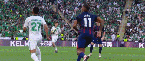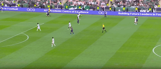 第37分钟,这位26岁的沙特国脚再次犯错。他在拼抢中的1次倒钩,重重踢到对手球员雅伊罗的面部。