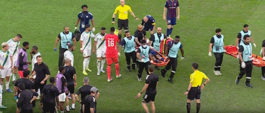 主裁果断出示红牌将其罚下,吉达国民剩余时间不得不少打1人。而雅伊罗也被担架抬下,随后被换下场。