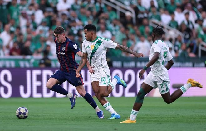 半场补时第3分钟,少打1人的吉达国民顽强扳平比分。加莱诺开出角球,前米兰中场凯西头球破门,将比分变为1-1。