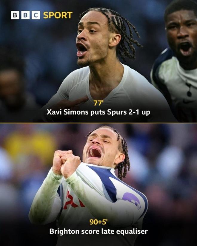 下半场,西蒙斯再度爆发,他在禁区前沿内切晃开角度后,一脚兜射轰出世界波,帮助热刺再次取得领先。就在所有人都以为热刺将凭借这粒精彩进球终结漫长的不胜纪录时,鲁特尔在补时第94分钟完成绝平,将热刺到手的三分硬生生变成一分。