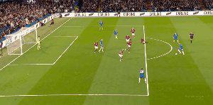 第43分钟,B费右路得球后带球突进,下底传中,库尼亚中路包抄劲射破门,曼联1比0领先。