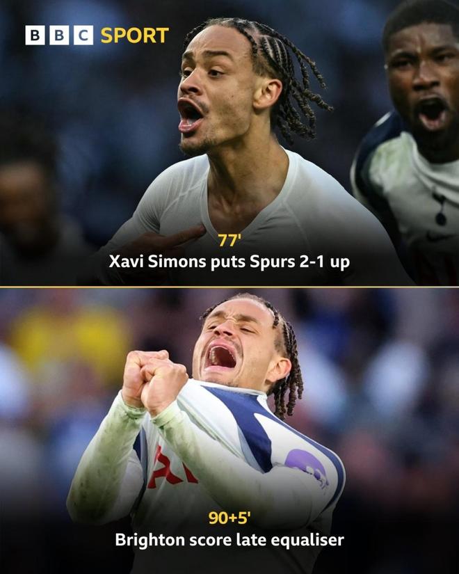 本场比赛,热刺曾两度取得领先,但却最终被布莱顿绝平。第39分钟,西蒙斯送出传中,波罗前插头球破门,帮助热刺打破僵局。