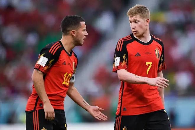 阿扎尔和德布劳内做过七年国家队队友,2015到2022年,比利时黄金一代的核心二人组。他们一起踢了2016欧洲杯、2018世界杯(季军)、2020欧洲杯、2022世界杯。数据上,两人直接配合打进7球——阿扎尔说的"joint goal participations"就是这个。
