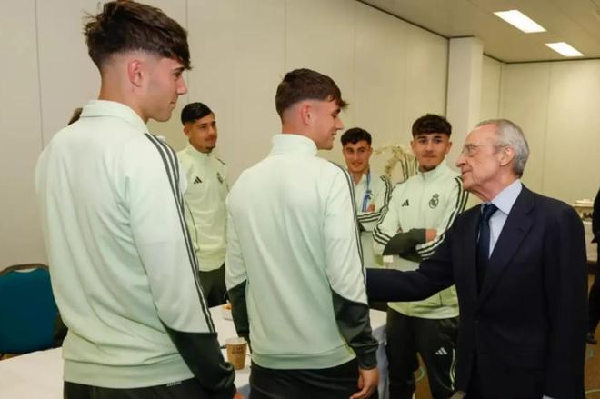 皇家马德里主席弗洛伦蒂诺-佩雷斯没有错过在洛桑举行的俱乐部青训重要赛事,他专程现场观战青年A队对阵布鲁日的青年欧冠决赛,皇马U19点球大战击败布鲁日U19,捧起冠军奖杯。
